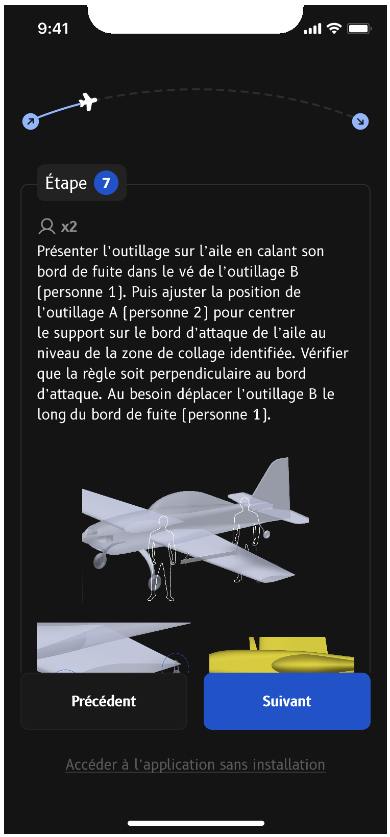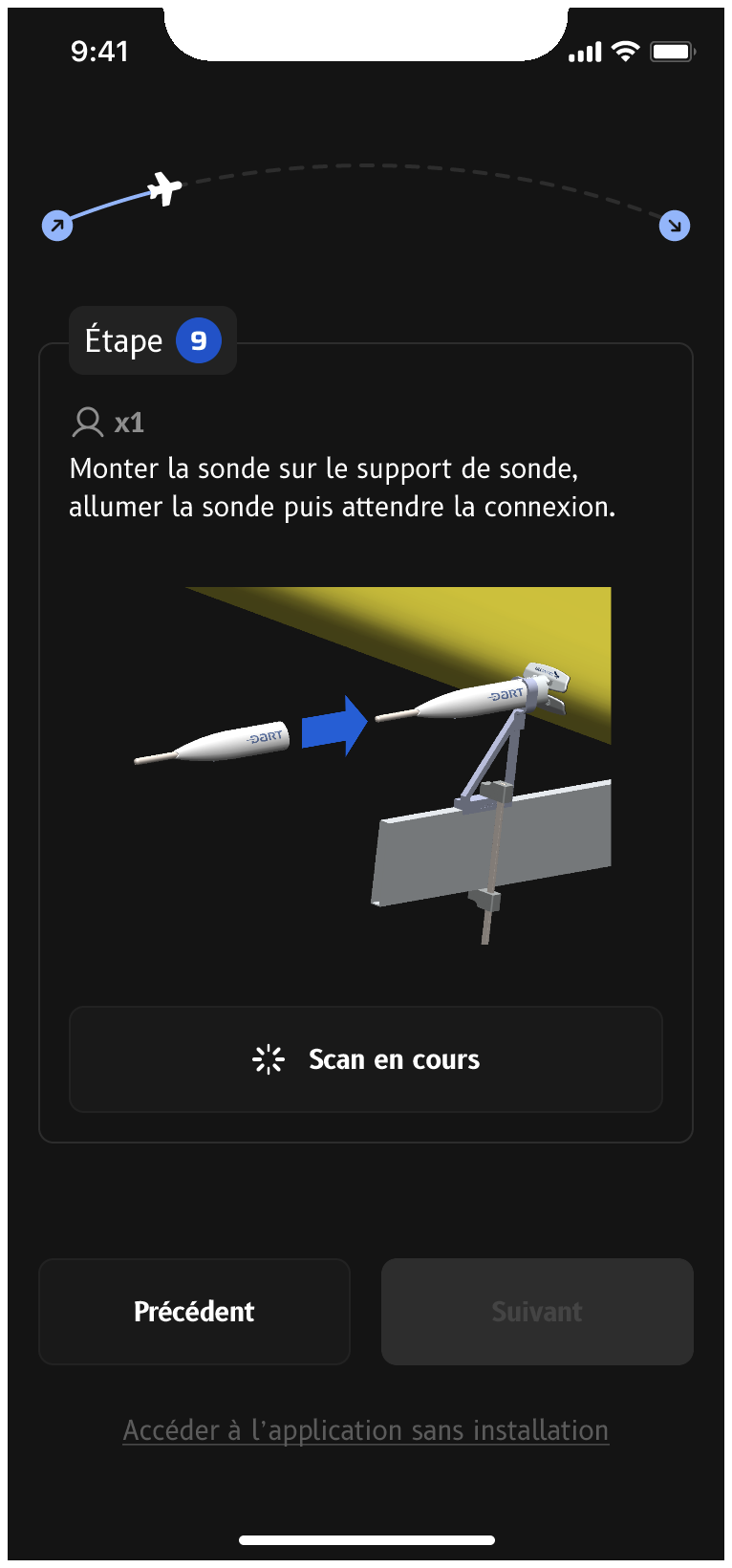 The app includes a step-by-step installation guide, illustrated and assisted by the probe on your aircraft, to ensure its proper installation before use and optimal system performance.