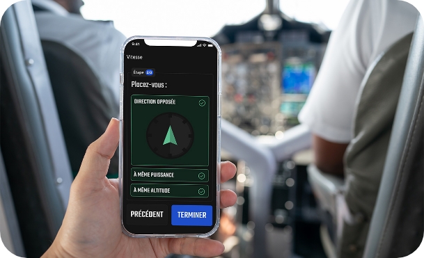 In flight, it ensures the display of flight data, identical to the display provided through the augmented reality glasses. It is thus possible to use the system without the glasses, solely through the mobile application interface, which is the DART system.